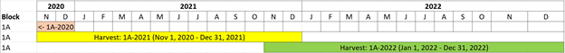 Here’s how the harvests can now be created, to more accurately reflect the growing cycle and activities of the crop(s) on that block.