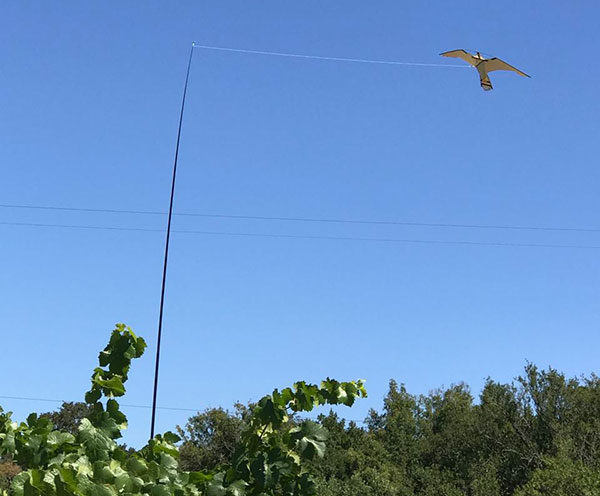 Crockett installed Falcon FrightKitesTM throughout the 750-acre vineyard at Kunde Ranch. His assessment of their performance speaks volumes: "The kites work better than anything else I have tried in my 15 years in the business. Although nothing is perfect, the kites are as good a commercially-available solution as it gets. Its ability to move like an actual falcon at the end of the pole makes all the difference."