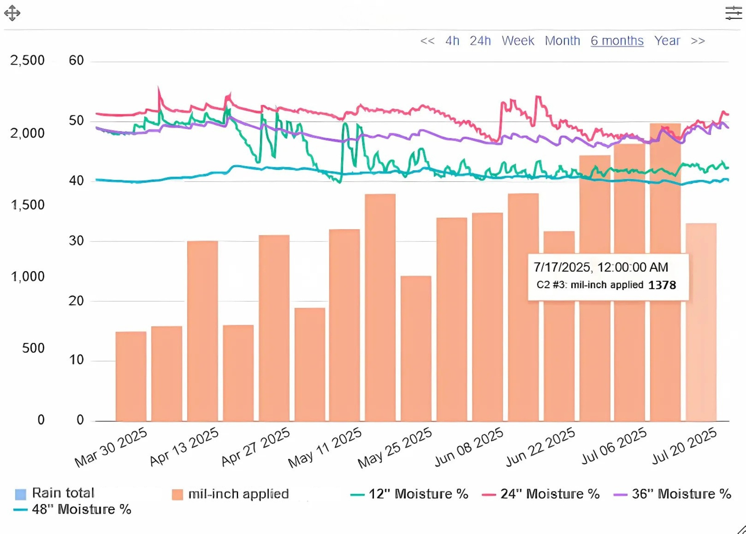 By analyzing historical soil moisture trends alongside past irrigation events, growers gain a clearer understanding of how their crops have responded to water applications over time. This allows them to dial in current irrigation strategies based on what has worked under similar conditions, rather than relying on assumptions or trial-and-error. It becomes significantly easier to justify seasonal investments in irrigation infrastructure, labor, or scheduling when the data directly supports how those choices impact yield, water efficiency, and return on investment.
