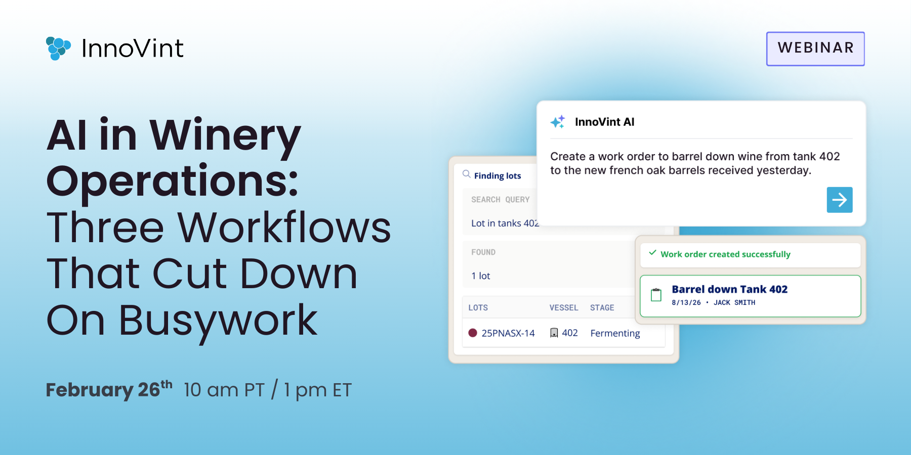 This Thursday, Feb 26 at 10 am PT, we’re hosting a short webinar to showcase three real examples of how wineries are using AI to reduce those manual efforts and make winemaking work easier.