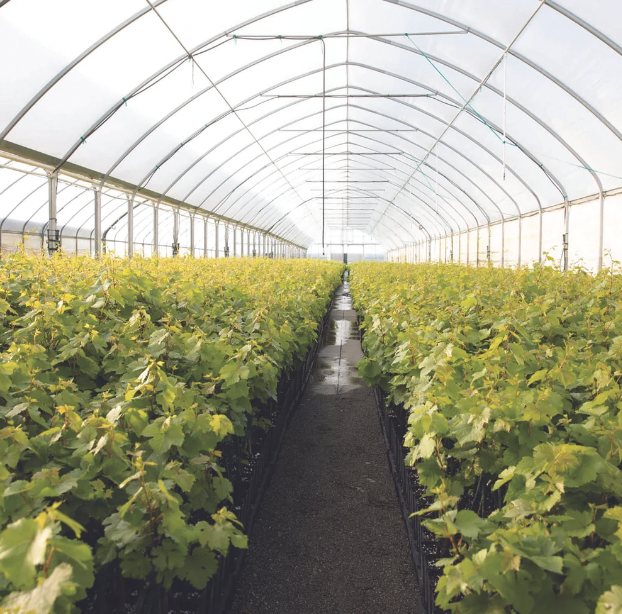Both dormant field-grown vines and greenhouse-grown plants are produced to exacting standards, with thoughtful spacing and cultivation that promote robust root systems and vigorous growth.