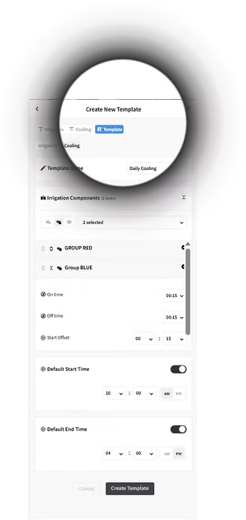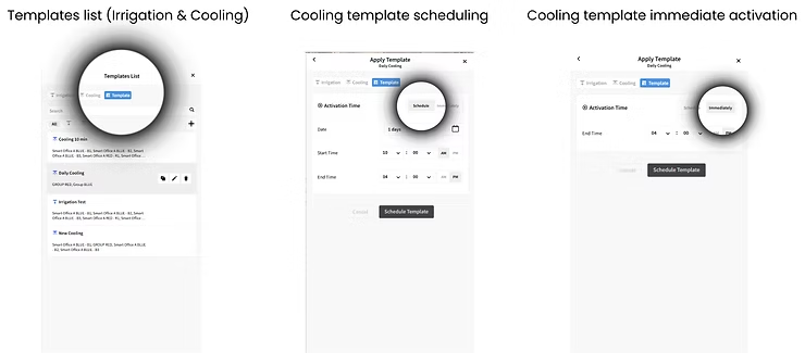 Schedule cooling – Set start/end times and apply the template to desired dates.