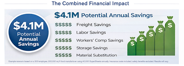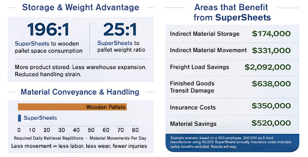 “The transition from wood pallets to SuperSheets is an operational change in how products are stored and shipped,” notes Isaac, “requiring a specialized push-pull forklift attachment. However, the ROI of that capital expense will be recouped very quickly.”