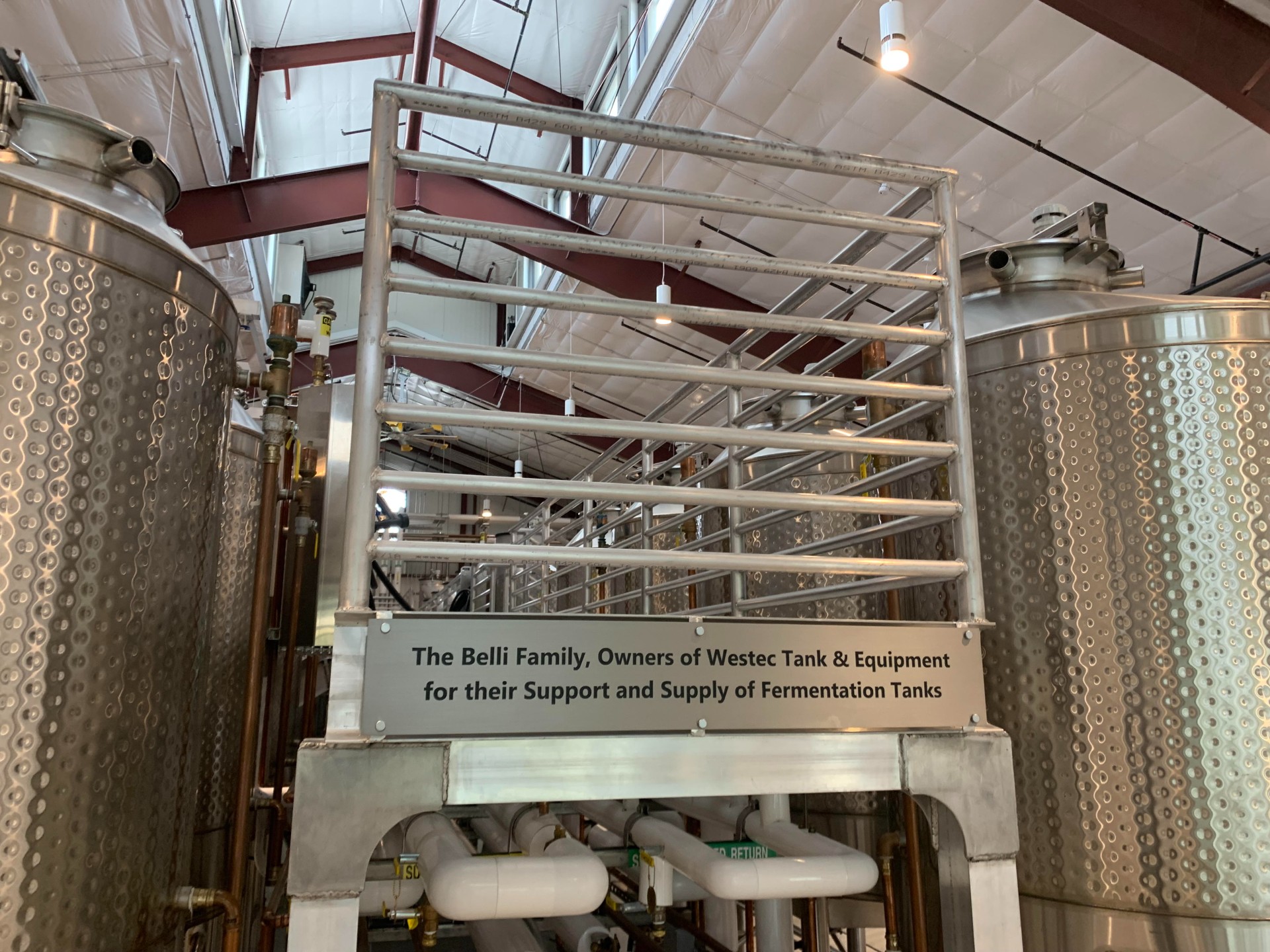 No Other Company Can Manufacture Tanks Like TheseWestec Tank & Equipment Co. recently completed the installation of two 3,500 gallon fermentation tanks at Zialena Winery in Geyserville. The tanks pictured below are 12 foot tall covered in two 6 foot sections of dimple jackets allowing for only a single seem in the middle resulting in minimal plumbing and maximum cooling. Westec's custom built welding machine is the only one in the industry capable of manufacturing these large dimple jackets.
